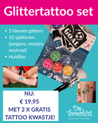 Het worden schitterende feestdagen met deze glittertattoo set voor thuis. Nu met gratis kwastjes t.w.v. € 5,50!